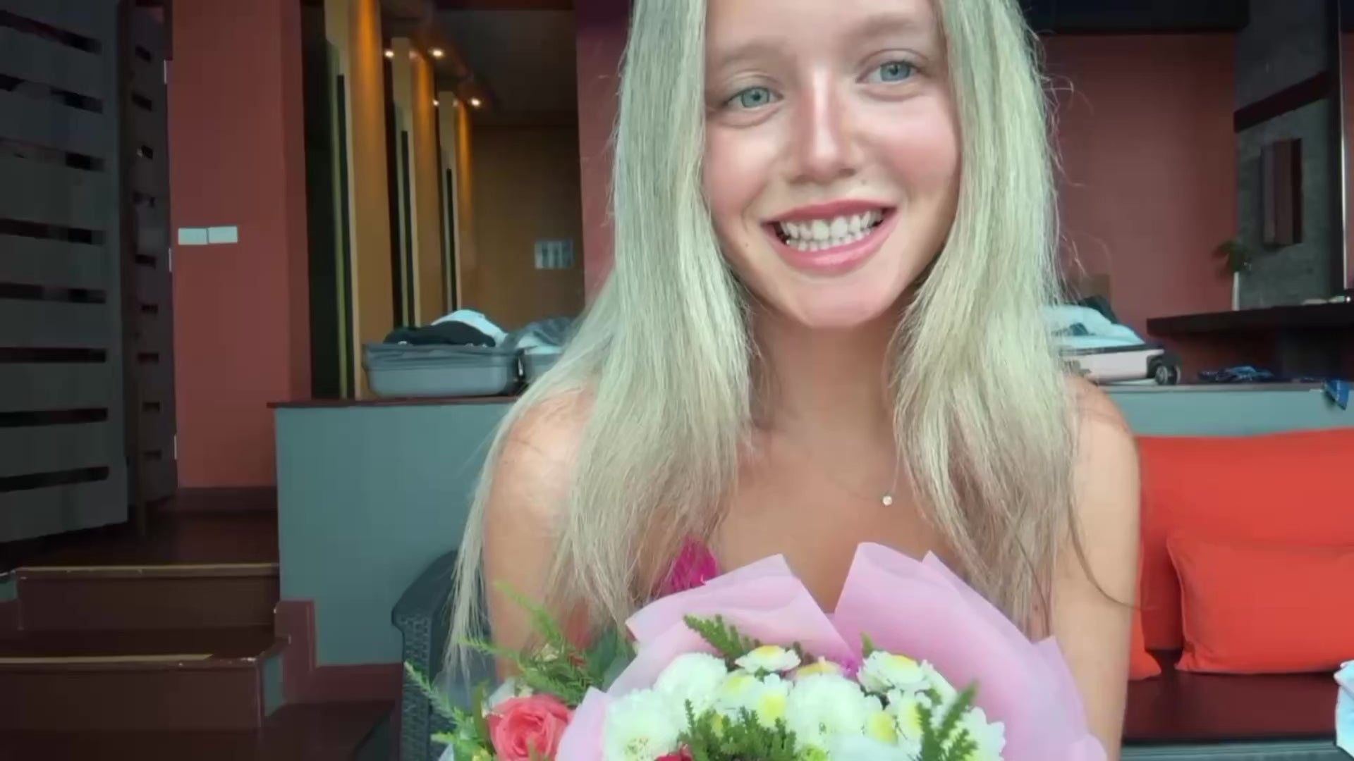 The small flower decorations are gently scattered and add a romantic and luxurious touch.